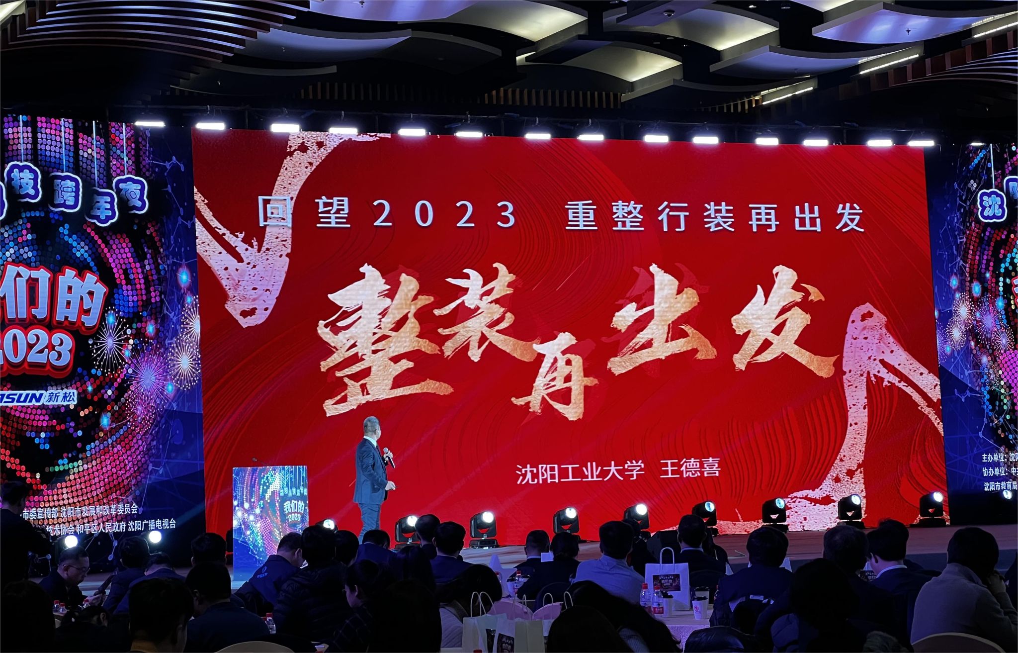 为充分展现沈阳市2023年面向世界科技前沿、面向国 家重大需求、面向经济主战场、面向人民生命健康所取得的 实现科技创新平台加速布局、实现关键核心技术重大突破、 实现优秀科技成果竞相涌现、实现创新创业人才不断集聚等 科技创新成就,12月31日,在新世界博览馆二楼会议厅举办“我们的2023-沈阳科技跨年夜”活动,米兰教授王德喜受邀参加沈阳科技跨年晚会,并作为高校教师唯一代表作“科技创新,成果产业化”演讲。