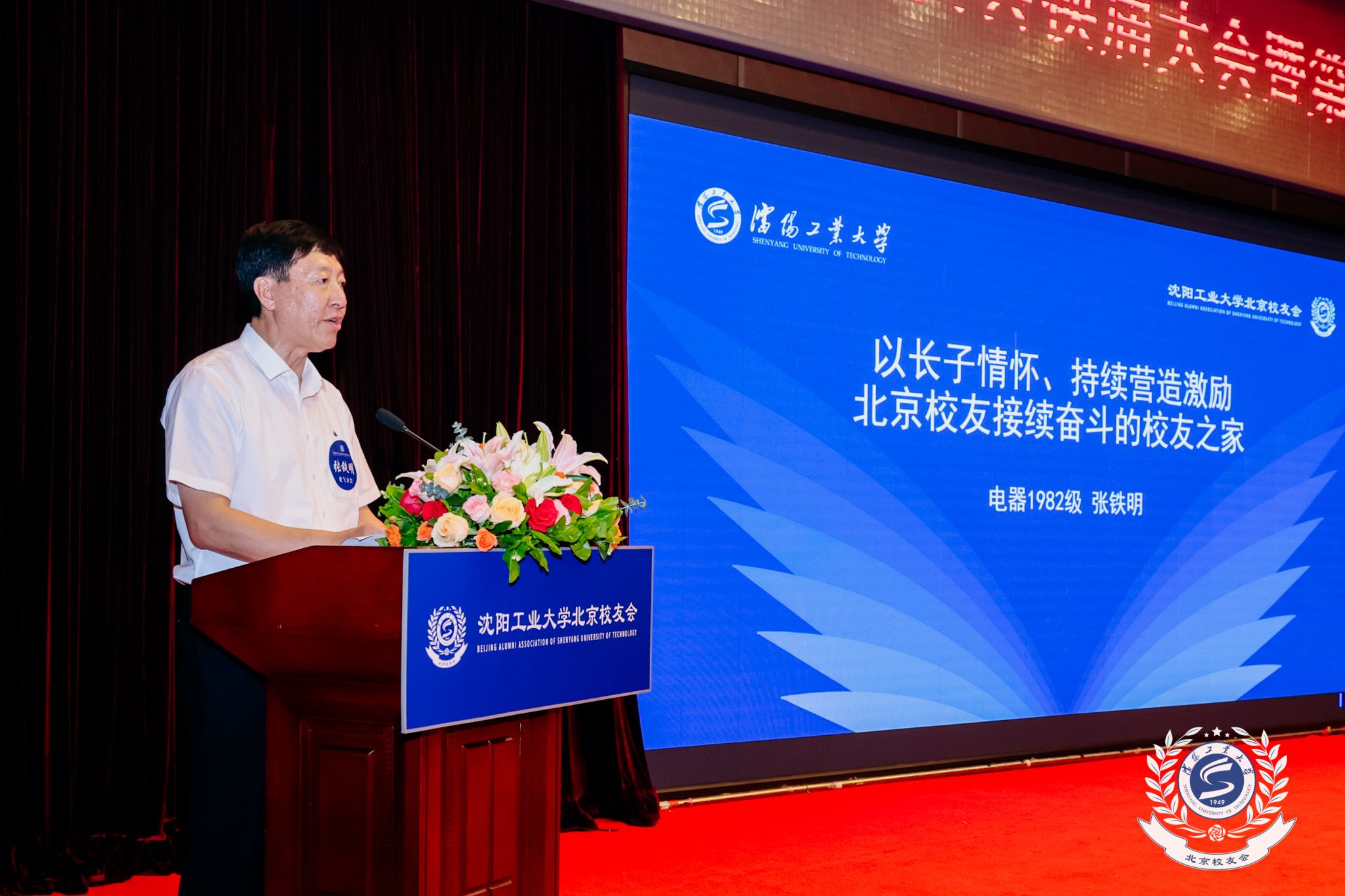贾玉明书记分别为第八届北京校友会名誉会长陈宏(1973级铸造专业)、刘大成(1985级机制专业),以及新一届理事会成员颁发聘书并授旗。