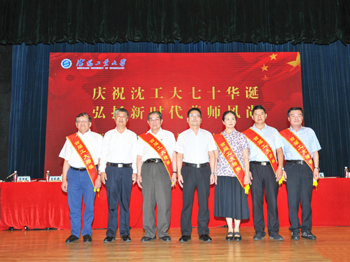 一流之师屹立三尺讲台,孕育士子花香。工大楷模翘首时代潮头,助力一流梦想。9月10日下午,学校在工大会堂隆重召开“庆祝沈工大七十华诞 弘扬新时代尊师风尚”——首届工大楷模暨教师节表彰大会。校领导刘自康、郭连军、李三喜、袁晓光、何又春、白秋艳、王世杰出席大会;首届工大楷模唐任远院士、杨理践教授、林莘教授、刘伟军教授、王德喜教授出席大会;获奖教师代表,从教30年教师代表,机关职能部门负责人,沈阳校区各教学单位教职工代表,学生代表参加大会。会议由党委副书记、校长郭连军主持。