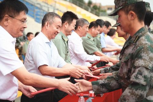 9月10日上午,米兰milan官方网站在中央校区南区体育场内对2019级新生军训成果进行了检验。校领导郭连军,李英民,袁晓光、何又春,白秋艳,王世杰,辽宁省军区学生军训工作办公室主任师玉来上校,辽宁陆军预备役高射炮兵第一师第一团政委张瑞田上校,沈阳市铁西区武装部部长盖文习上校出席活动。相关职能部门负责人,各学院党委、党总支书记及全体学生工作干部参加活动。大会由党委学生工作部副部长、学生处处长乔凯平主持。