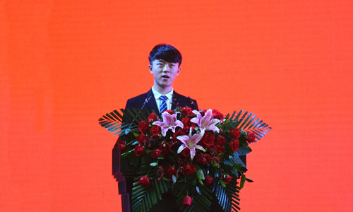 在校生代表,校学生会主席倪田野发言