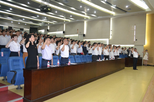 在郭连军的领誓下,会议举行了庄严的宣誓仪式。在党的生日这一天,全体与会党员郑重宣读了入党誓词,提醒自己时刻不忘初心、不负誓言、不畏前行,牢记党员身份、牢记师生之心、牢记立德树人,坚定信念、强化责任、创新实干、担当奉献。
