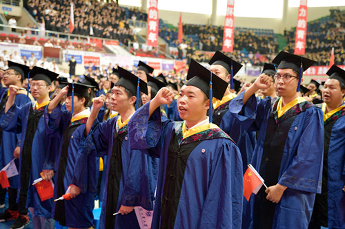 管理学院张尧同学作为毕业生代表发言,表达了对母校的无限依恋,对恩师的敬佩感激,对同窗的惜别不舍以及对未来的憧憬和畅想,并率领全体毕业生宣读毕业誓词。