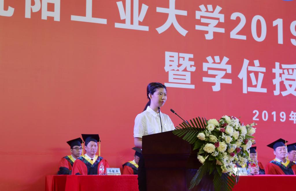 盖立亚作为校友代表讲话,她结合自己的成长经验寄语当代青年,特别是工大学子,要自强不息,坚持不懈;踏实努力,敬业勤奋;积极改变,坚持创新。最后,她还希望广大学子不要忘记母校和师恩,怀揣梦想和知识,从此踏上人生新的征程。