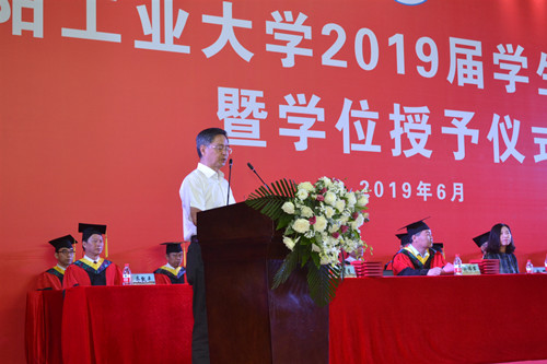 他希望全体毕业生牢记工大校训,带着母校赋予的远大理想、实干品行和创新勇气,担起引领时代的栋梁之责,走向远方,开创未来。