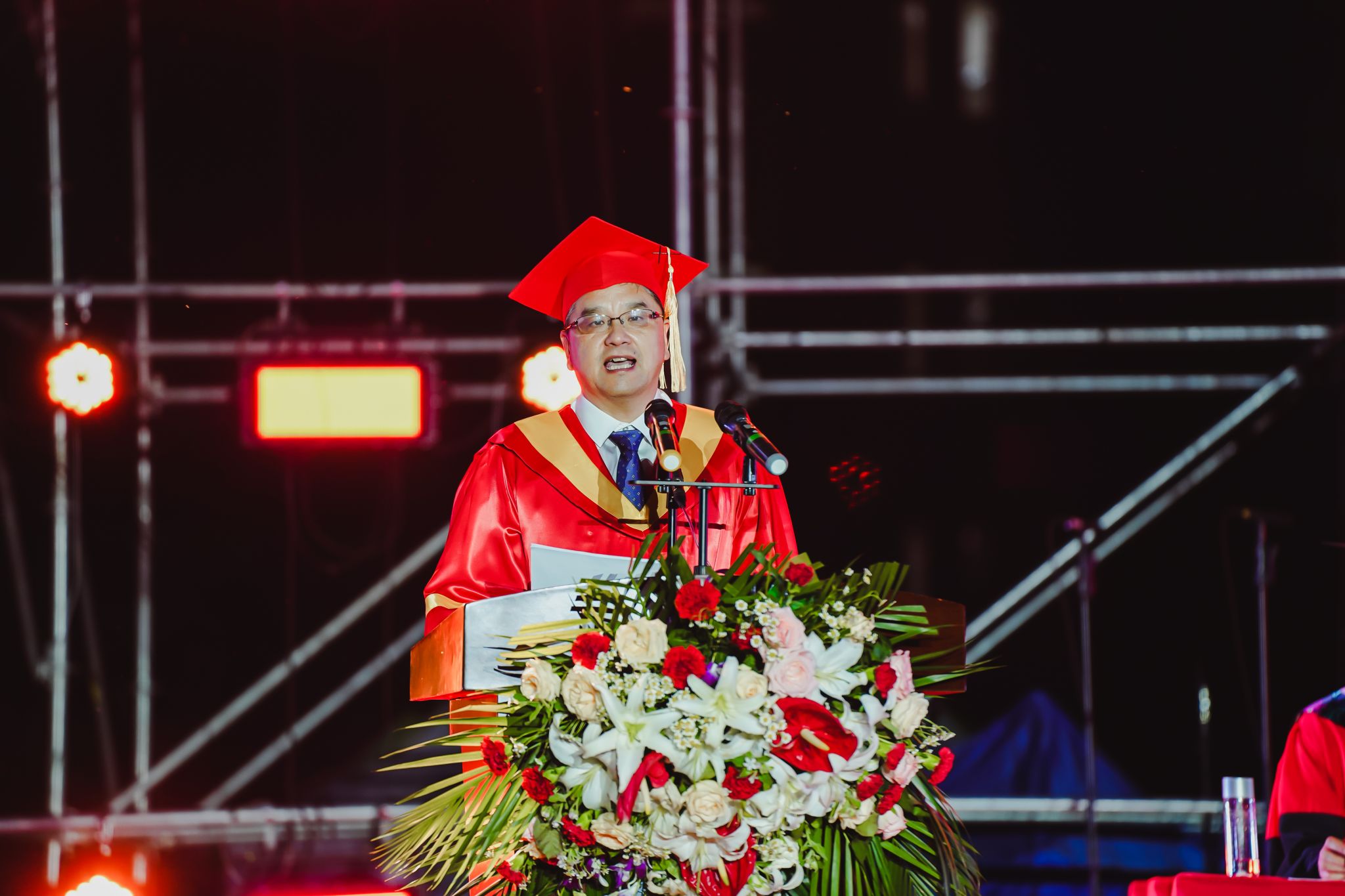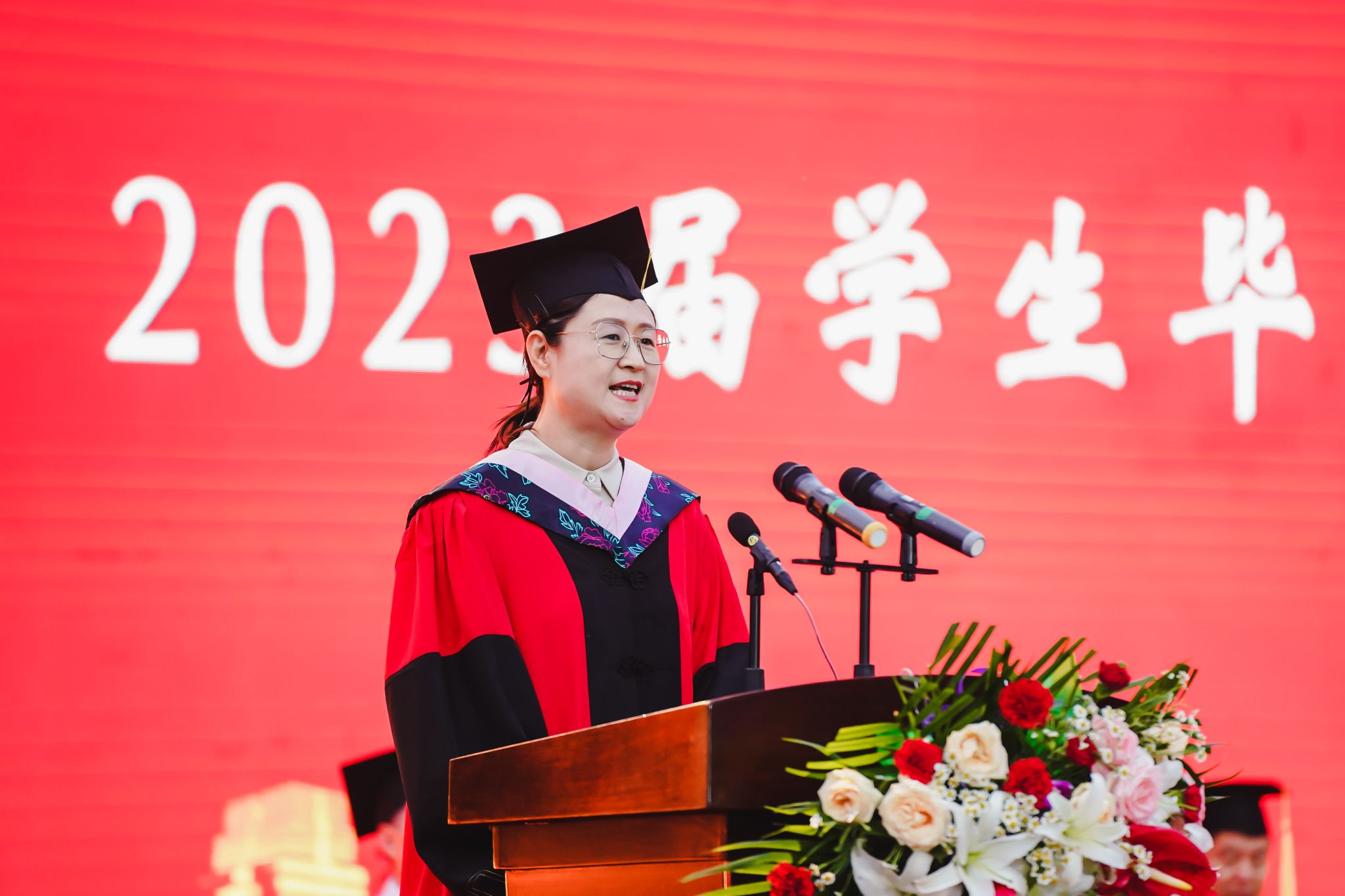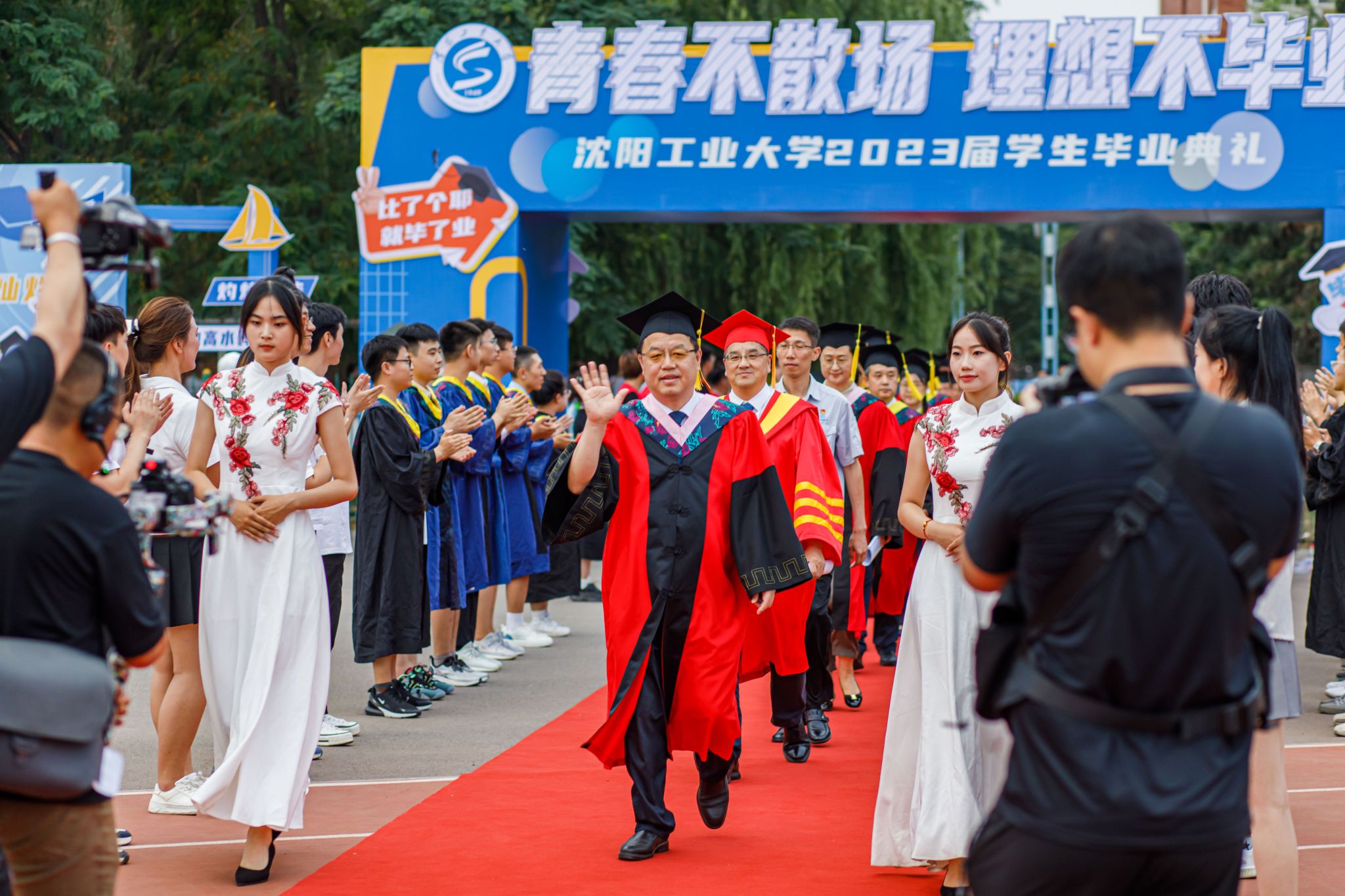 校学位评定委员会主席、党委副书记、校长张珂为2023届博士研究生、硕士研究生、本科生代表拨穗授位并合影留念。他以“牢记母校嘱托 做新时代一朵奔涌的浪花”为题,对全体毕业生寄以殷殷祝福和嘱托。他回顾了2023届毕业生求学期间学校日新月异的发展变化和同学们在校期间的经历,表示经过考验锤炼和学习实践,同学们的知识储备更加丰富,思考问题的深度和能力与日俱增,综合素质有了质的提升,学校为拥有如此优秀的毕业生感到自豪和骄傲。他希望2023届毕业生心怀“国之大者”,做人生的追光者;练就过硬本领,做新时代的奋斗者;无畏困难和挫折,做突破自我的孤勇者;奔腾不息,奋斗不止,做勇立潮头的弄潮者。一代人有一代人的使命,一代人有一代人的担当,党的二十大擘画了以中国式现代化全面推进中华民族伟大复兴的宏伟蓝图,张珂校长最后向全体毕业生发出号召,希望毕业生们把在工大的所学转化为砥砺前行的动力,在时代的潮涌下努力练就过硬本领,在青春赛道上奋力奔跑,不负韶华、不负盛世,在全面建设社会主义现代化国家新征程上做出沈工大人应有的贡献。