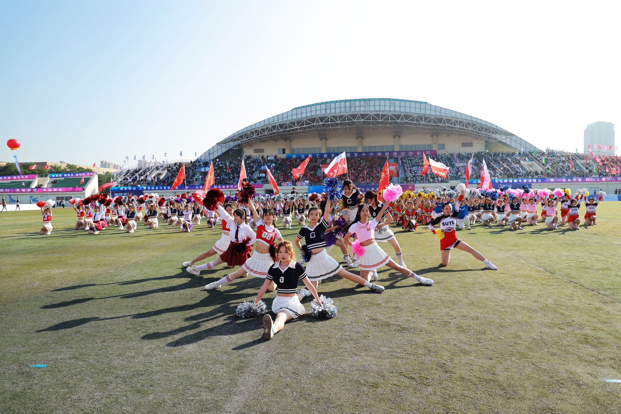 运动会在激昂的《运动员进行曲》中拉开帷幕。在中央校区,国旗方队、校旗方队、校训方队、花束方队、旗海方队、裁判员方队以及各单位代表队依次进入运动场。在辽阳分校,国旗方队、红旗方队、裁判员方队以及各单位代表队依次进入运动场。入场式上,师生们列队整齐、口号铿锵,英姿飒爽、朝气蓬勃,充分展示学校守正创新、奋发进取的精神文化,各方队以充满创意的表演,展现出各学院、部门特色和师生良好的精神面貌,呈现了异彩纷呈的开幕式展演。