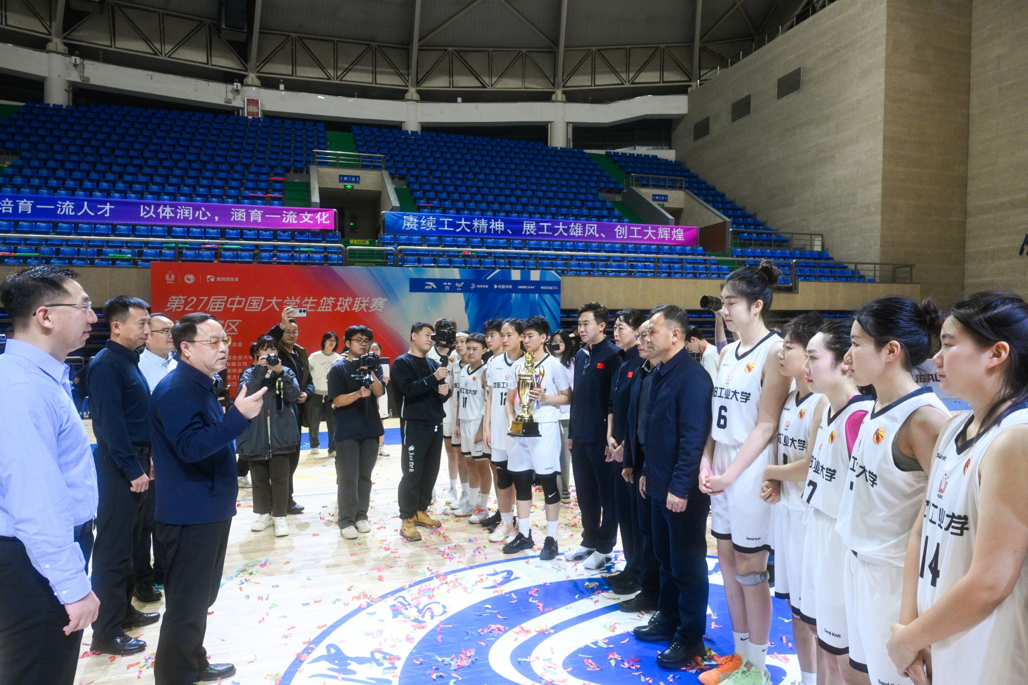 12月10日下午,第27届中国大学生篮球联赛(辽宁赛区)总决赛在米兰milan官方网站体育馆落下帷幕。决赛中,米兰女子篮球队以55比49战胜沈阳药科大学女子篮球队,获得冠军,并将以七胜一平的不败战绩、辽宁省冠军的身份挺进明年5月的全国总决赛。学校党委书记贾玉明,党委常委、副校长孙秋野、臧喜民、夏明超与两千余名师生一同在现场见证米兰女子篮球队摘得桂冠。