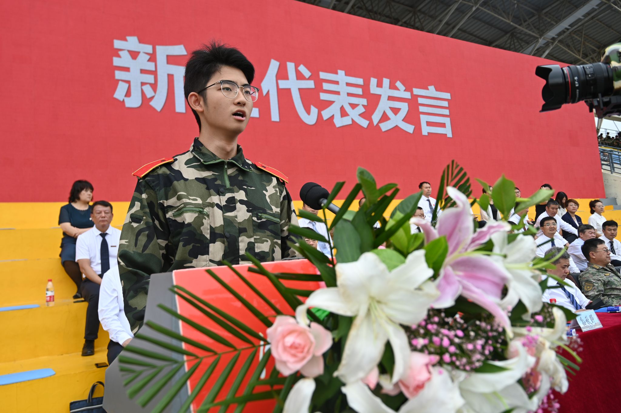 典礼前,进行了军训成果汇报。各学院学生工作负责人与新生辅导员担任分列式领队,同2023级学生一起步伐整齐、口号嘹亮,精神饱满地通过主席台,接受检阅。