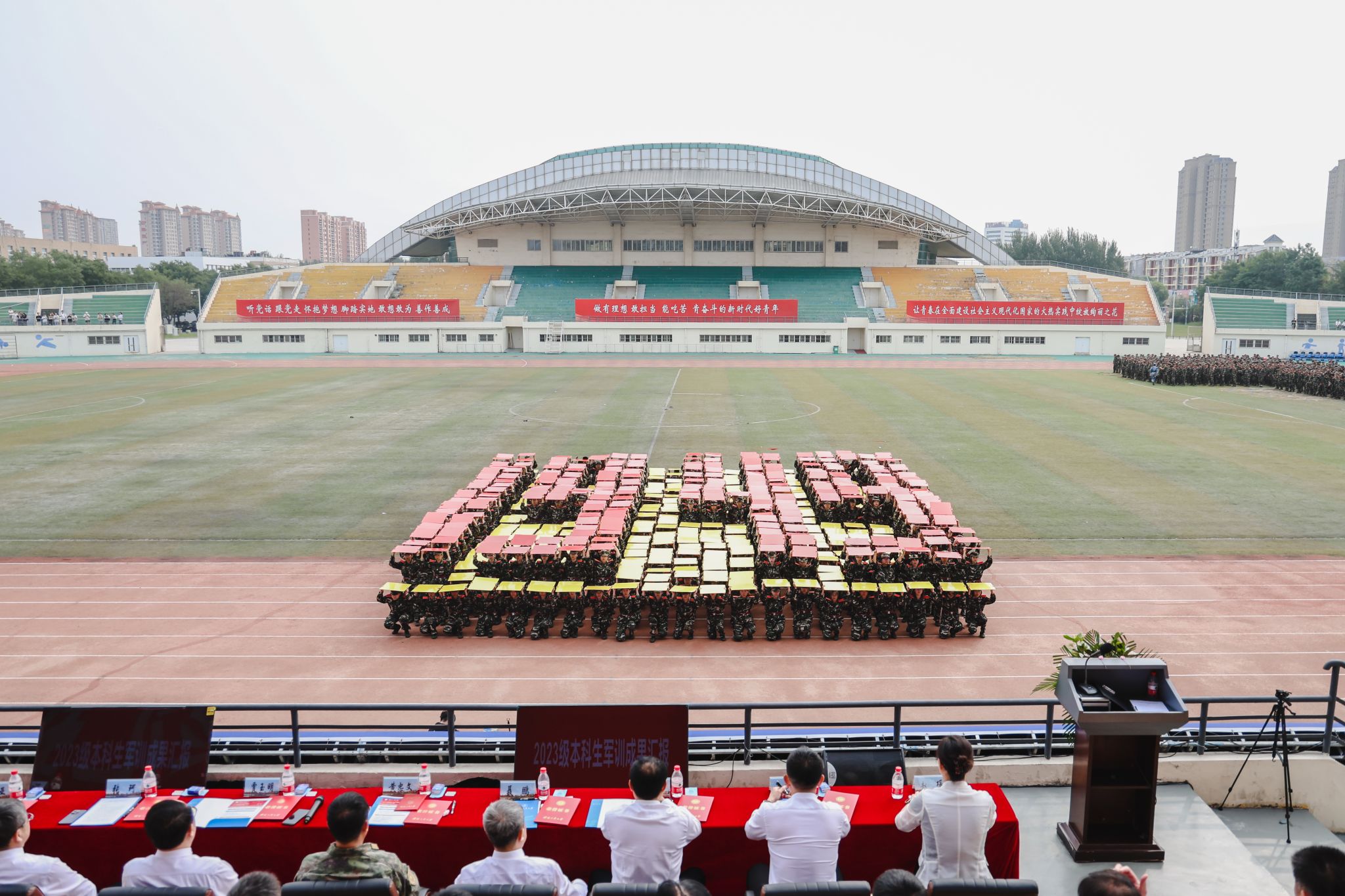 9月8日,中央校区2023级学生开学典礼暨军训成果汇报会在南区体育场举行。辽宁省军区战备建设局大校副局长黄忠文,校领导贾玉明、张珂、聂鹏、陈延明、陈卫国、柯丽、孙秋野、臧喜民出席大会,党委副书记赵璟主持会议。学校相关职能部门负责人、各二级学院党政负责人、学生工作干部、军训教官、2023级全体学生参加大会。