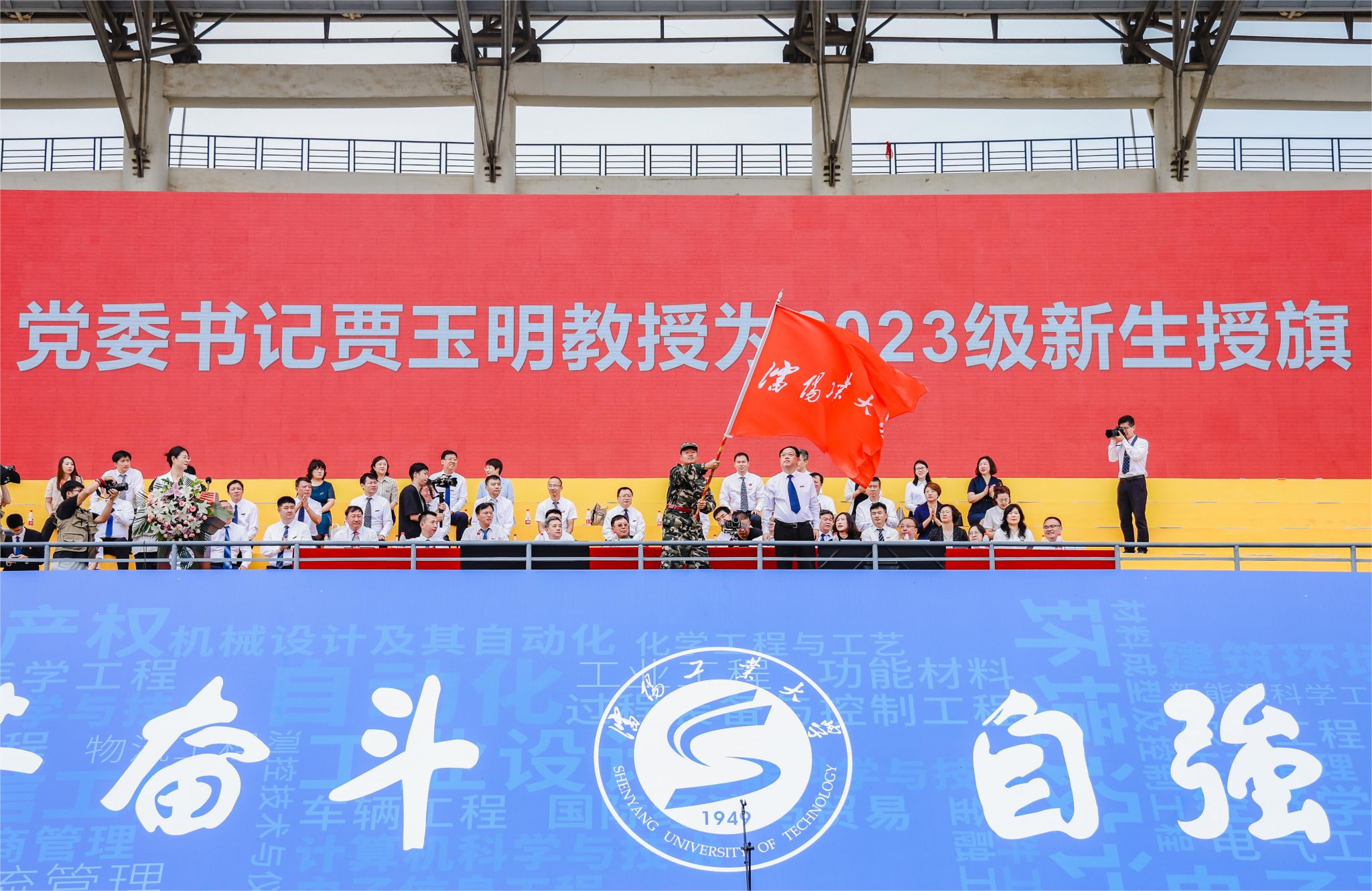 典礼现场,党委书记贾玉明为2023级新生授旗。接过工大人的接力棒,同学们将继续传承工大精神、弘扬工大文化,在强国路上谱写出绚丽的青春之歌。