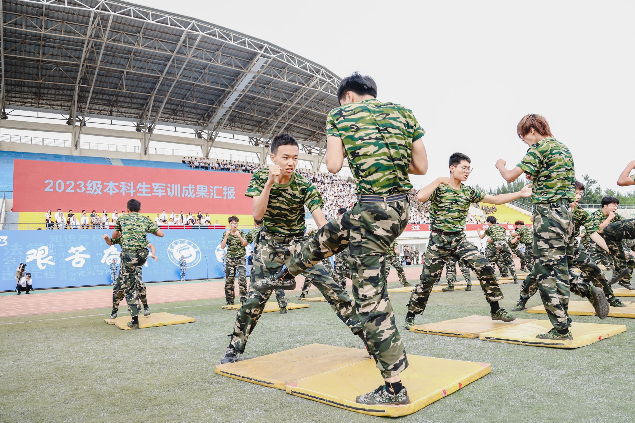 两千多名参训学员进行了刺杀操、擒敌拳、应急棍、匕首操、军体拳、擒拿格斗、战术、爱国爱校操等军训科目表演。他们精神抖擞,英姿勃发,一招一式动作果断、步调一致,充分展现了入学以来的训练成果和青春朝气,不时赢得现场师生的阵阵掌声。