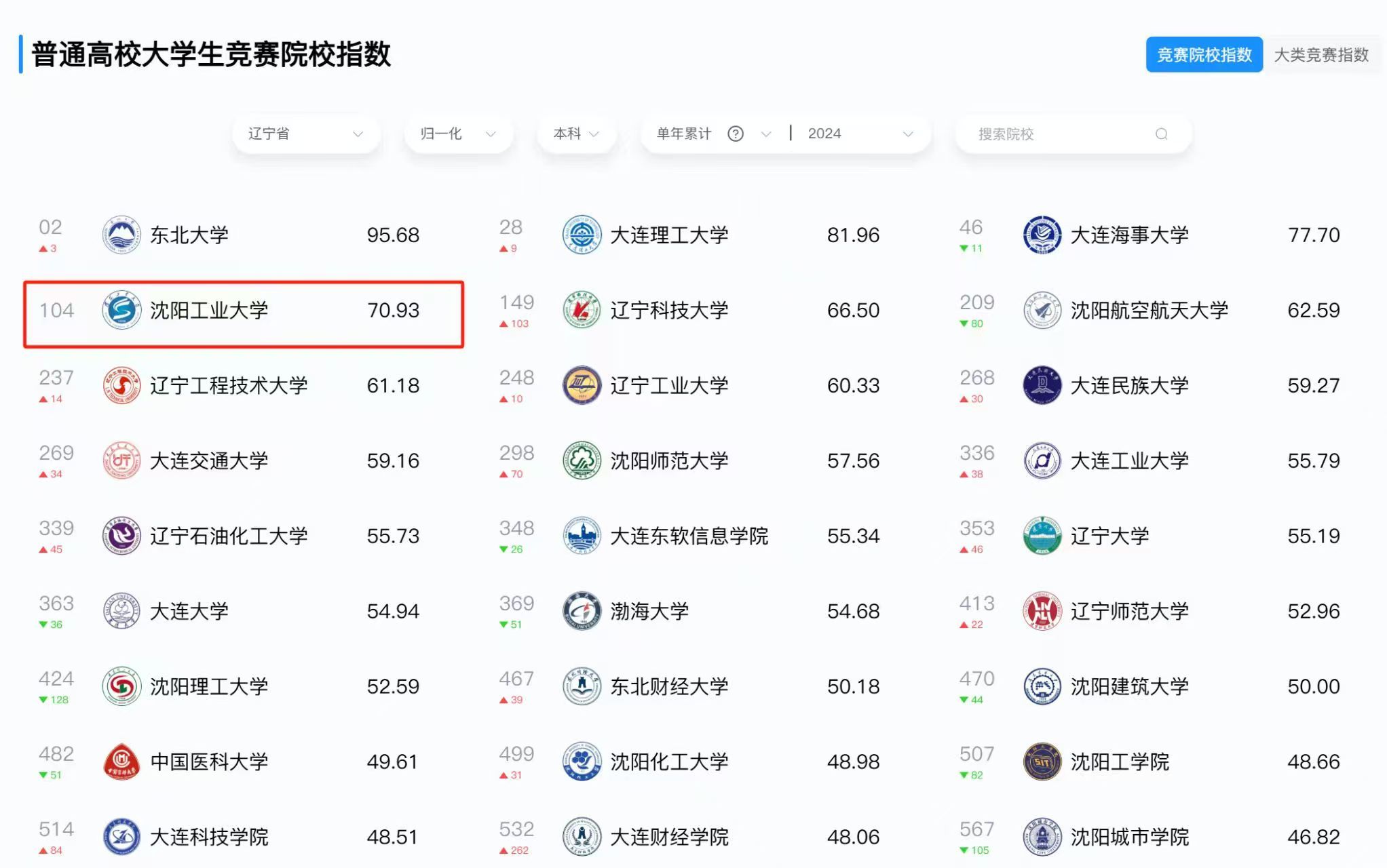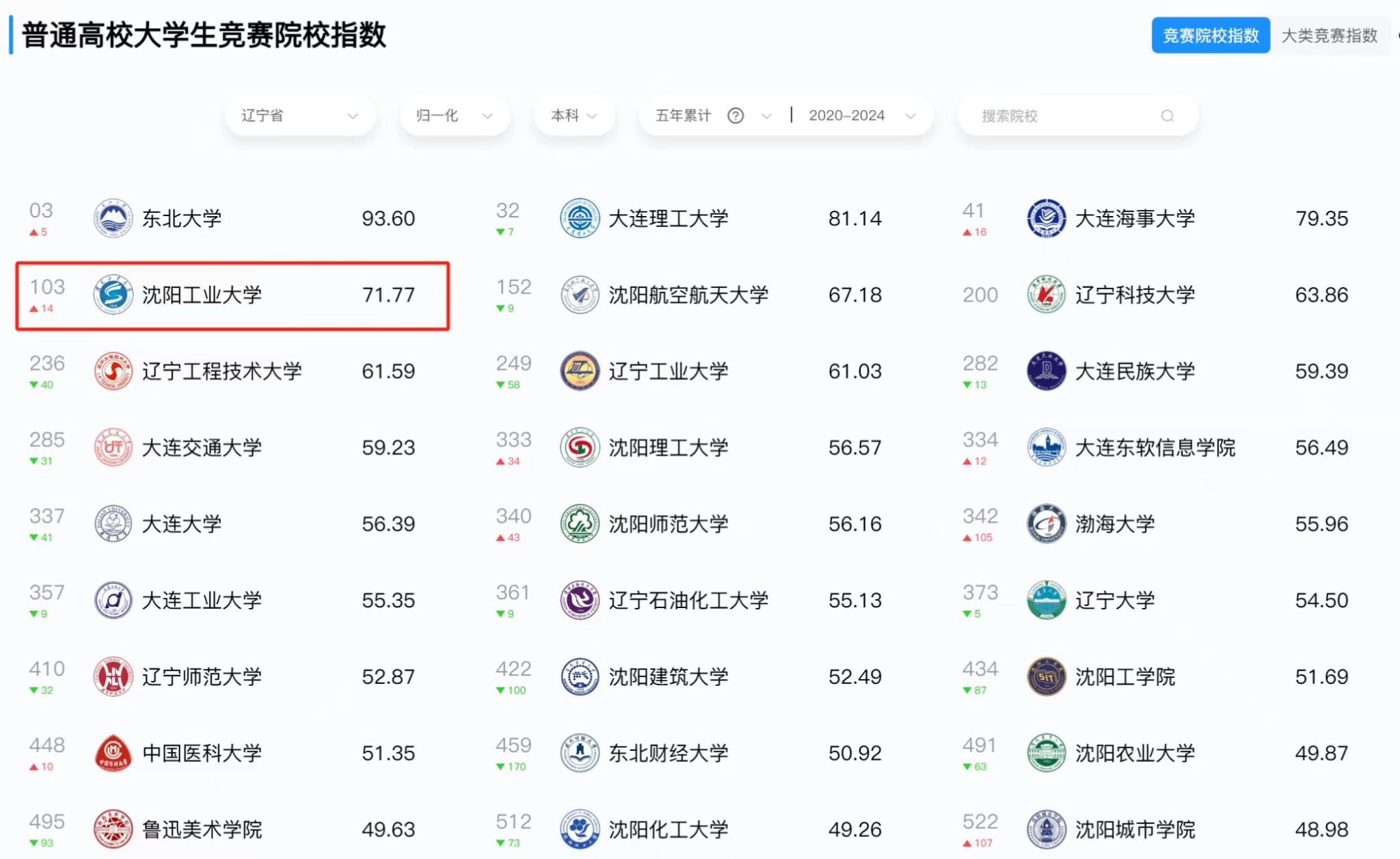 米兰在“全国普通高校大学生竞赛院校指数”(2020-2024)榜单中位列103名