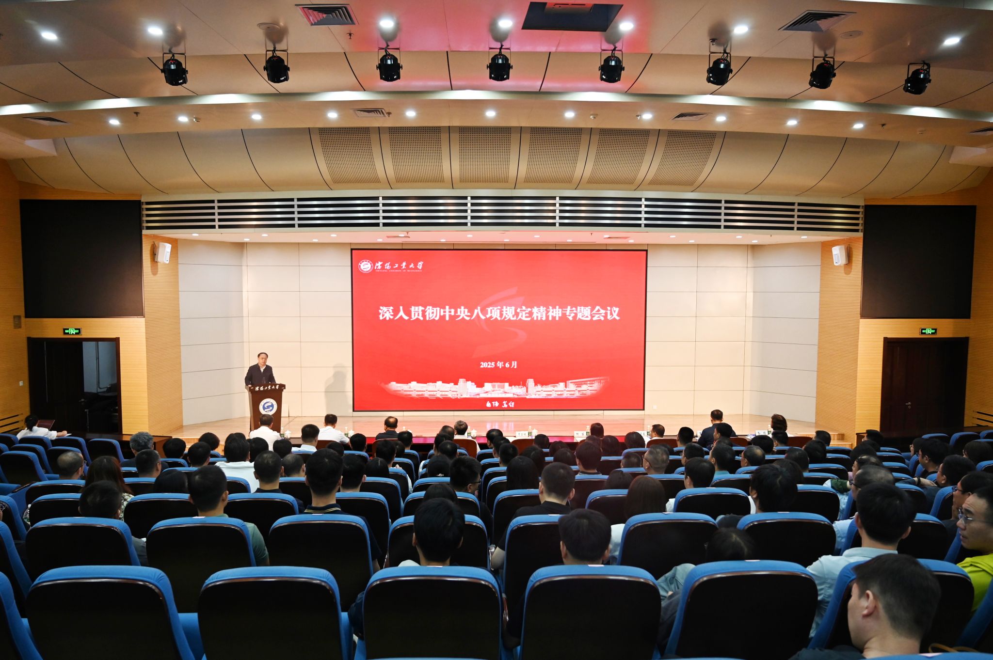 6月5日下午,学校在科学会堂召开深入贯彻中央八项规定精神专题会议。全体在校校领导出席会议,沈阳校区中层干部和各学院办公室主任参加会议,辽阳分校相关人员线上视频参会。会议由党委书记贾玉明主持。