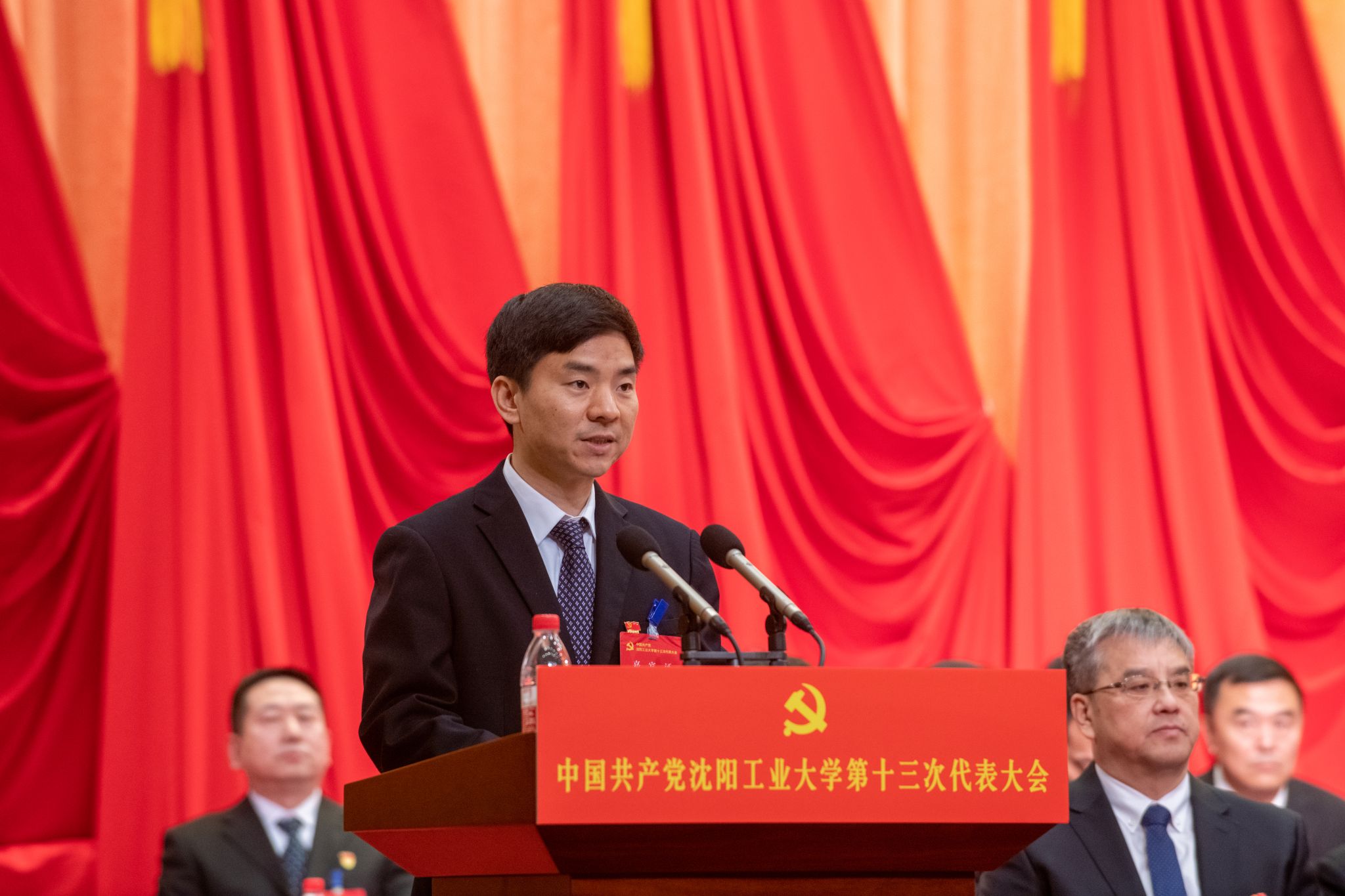 党委书记贾玉明代表学校第十二届委员会向大会作了题为《矢志科教报国 投身辽沈振兴 以高质量发展开创国内一流大学建设新局面》的工作报告。报告共分为四个部分:第十二次党代会以来的工作;新征程学校建设发展的战略部署;未来五年重点任务;坚定不移推进新时代党的建设。
